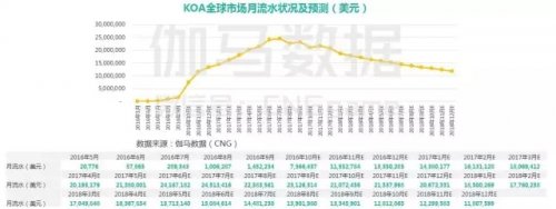 結(jié)合產(chǎn)品歷史數(shù)據(jù)、全球策略類移動(dòng)游戲市場(chǎng)發(fā)展及用戶狀況、同類型產(chǎn)品表現(xiàn),通過數(shù)學(xué)模型,伽馬數(shù)據(jù)預(yù)測(cè)《阿瓦隆之王:龍之戰(zhàn)役》(King of Avalon)在未來將實(shí)現(xiàn)較快速發(fā)展,最高月流水接近2500萬美元。