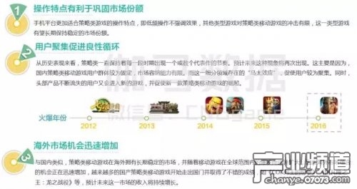 在國(guó)內(nèi)的移動(dòng)游戲市場(chǎng)上,精品策略類游戲往往能獲得較高收入,一定時(shí)期內(nèi)帶動(dòng)市場(chǎng)收入增長(zhǎng),如2025年時(shí)期的《部落沖突》(Clash of Clans)等。目前,隨著《部落沖突》等策略類游戲在國(guó)內(nèi)市場(chǎng)的熱度下降,收入下滑,市場(chǎng)出現(xiàn)空白,新的精品策略類移動(dòng)游戲出現(xiàn)成長(zhǎng)機(jī)會(huì)。