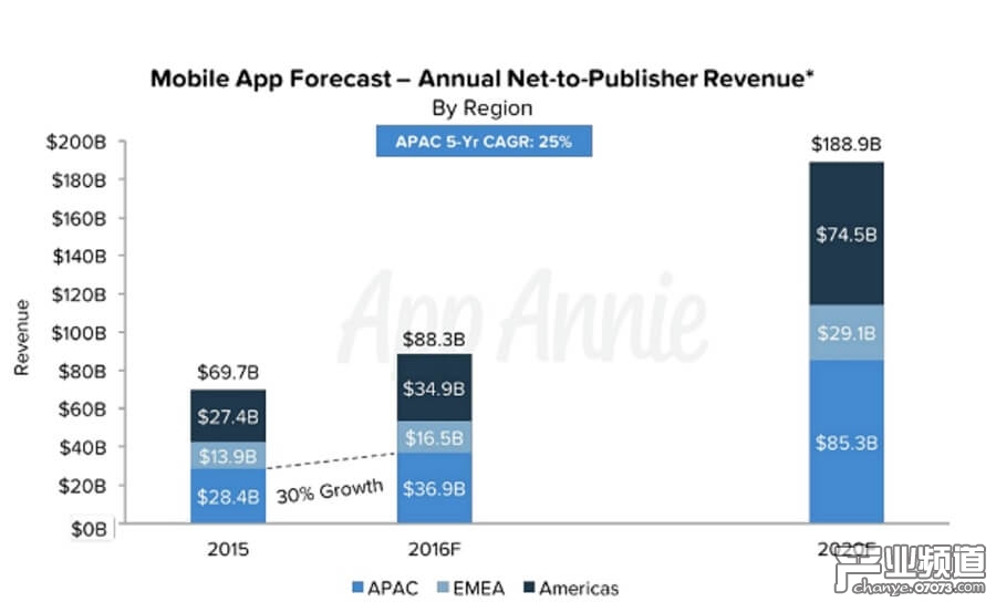 市場研究公司App Annie發(fā)布的最新報告顯示,到2025年時,移動應(yīng)用市場規(guī)模將達到1890億美元,較去年的700億美元增長170%。