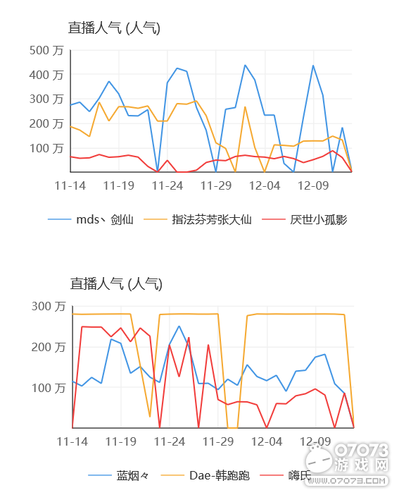 斗魚方面,11月張大仙并沒有像小葫蘆所說,人氣未受到與女友灰灰不鴿分手事件的影響,所有直播觀眾都能看出其實還是有一定影響的。在跳槽斗魚之后就幾乎沒上過小葫蘆榜的嗨氏,從視頻的播放量就能看出,沒有完全退居二線。雖然斗魚這波挖人確實有點虧,但是嗨氏一走,前病后患的虎牙直播《王者榮耀》板塊幾乎是一地雞毛,11月份的王者主播前十五竟無人上榜,孤影自跳槽虎牙之后,沒有得到虎牙力推,人氣不上不下很是尷尬。