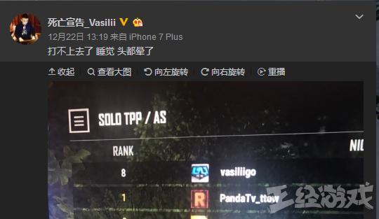 在四面楚歌的情況下,死亡宣告還是選擇了轉(zhuǎn)戰(zhàn)吃雞,戰(zhàn)旗已經(jīng)是回不去了,讓人意外的是,現(xiàn)在同樣是備受質(zhì)疑的斗魚接納了死亡宣告。而且在12月22日,死亡宣告還在微博中曬出了自己的成績,服務器第8名!看來也是為今天的復出埋下了伏筆。