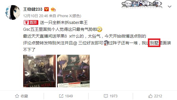 最近,為了回饋?zhàn)约悍劢z在全民盛典中給予的支持,老王又給粉絲發(fā)福利了。細(xì)心的他甚至還考慮到了粉絲中不少的動漫粉,特意把部分禮物換成了稀有手辦,很好地照顧到了所有人的需求。