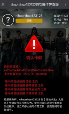五五開吃雞大號(hào)被確認(rèn)作弊