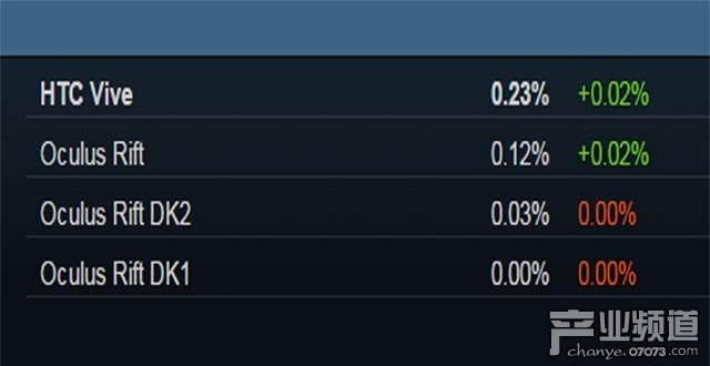 根據(jù)Steam公布的數(shù)據(jù)(如上圖),在12月份,HTC Vive月活躍用戶(hù)數(shù)占Steam總活躍用戶(hù)數(shù)0.23%;Oculus Rift月活躍用戶(hù)數(shù)占總活躍用戶(hù)數(shù)0.12%;Oculus Rift DK2沒(méi)有變化,仍為0.03%。