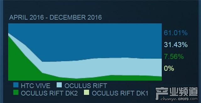 在12月份,HTC Vive的Steam市場(chǎng)份額有小幅度下降,Oculus Rift呈現(xiàn)較大幅度上升。這可能是因?yàn)門(mén)ouch控制器的上市。