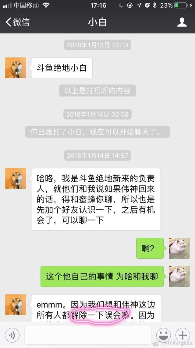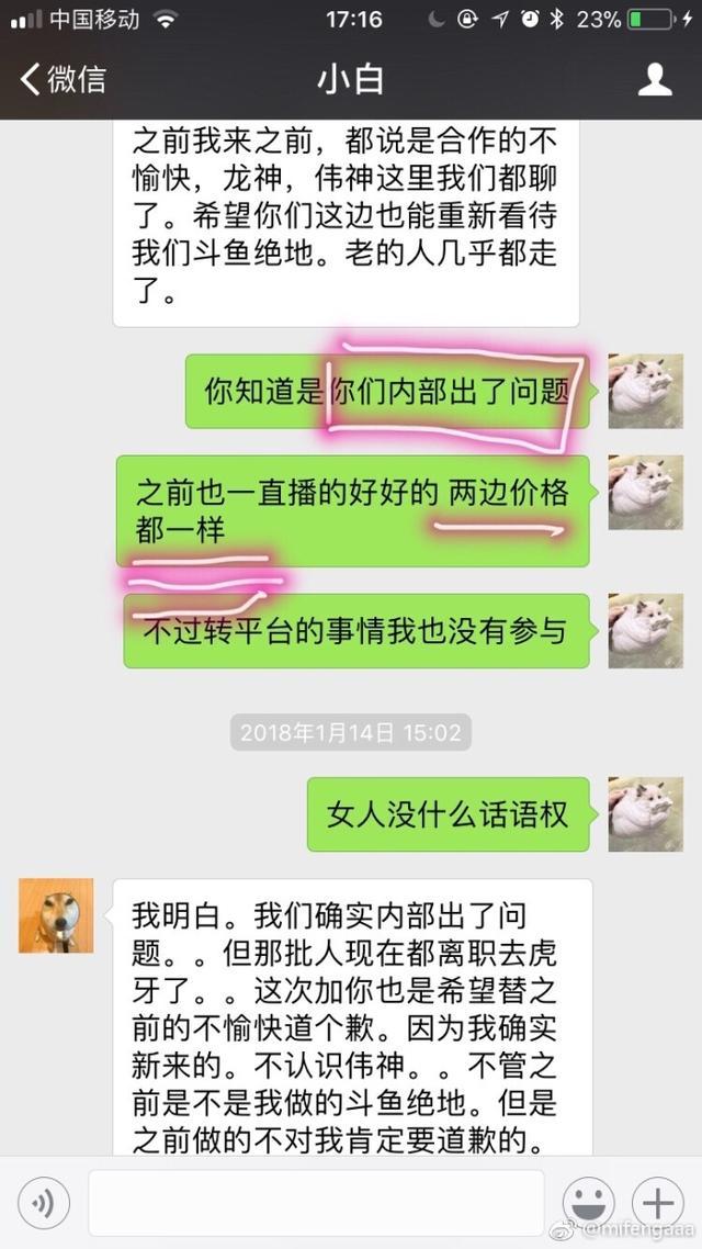 韋神女友曬與斗魚聊天記錄