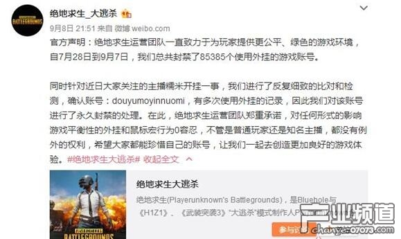 首先大家都可以發(fā)現(xiàn)的一點(diǎn),就是藍(lán)洞在本次事件中反射弧太長,甚至可以說在故意在拖延處理時間。這一點(diǎn),大家完全可以對比參照之前主播魔音糯米開掛事件的處理情況:9月6日凌晨,知名電競?cè)它S老仙毒奶色舉報(bào)《絕地求生》主播魔音糯米吃雞開掛。9月8日,絕地求生官方就發(fā)布公告,對魔音糯米予以封號處理。這樣的反應(yīng)速度得到了玩家的認(rèn)可和一致好評。
