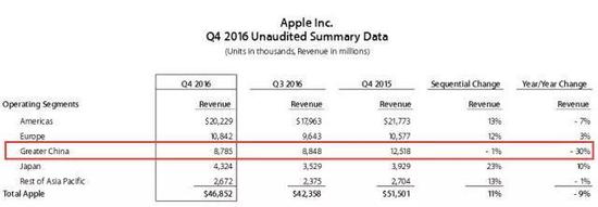 這次財報最“亮眼”的是大中華區(qū)營收,為87.85億美元,比去年同期125.18億美元下滑了30%。