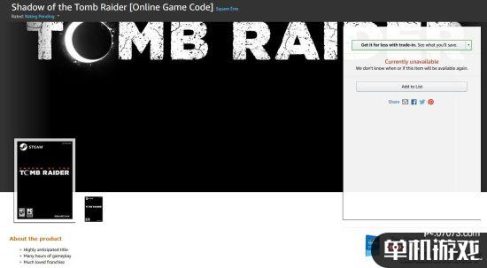 在亞馬遜商城,已經(jīng)上線了《古墓麗影:暗影》購(gòu)買頁(yè)面,根據(jù)游戲封面,看起來(lái)這是售賣的游戲Steam激活碼,雖然售價(jià)、配置要求等詳細(xì)信息還都是空白,但是產(chǎn)品介紹里也提到了發(fā)售日是9月14日。目前官方暫時(shí)還沒(méi)有正式公布消息,游民星空將持續(xù)關(guān)注。