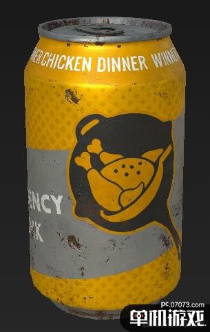 圖中的能量飲料主體變成了黃色,瓶身上印有一張平底鍋,鍋里一只雞,還有“Winner Winner,Chicken Dinner”的字樣。