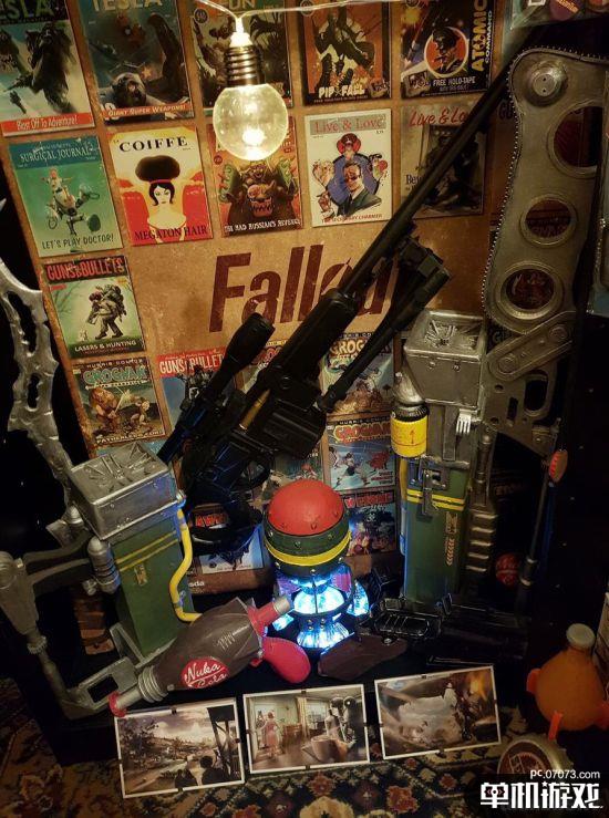 一名專注于打造《輻射》系列的道具師Miss CJ x在自己的推特上曬出了海量的《輻射》主題周邊,其中包括多種游戲中的槍支、核子可樂和海報(bào),以及一些游戲官方推出的手辦和BB小子收藏品等,最引人注目的是那臺(tái)核子可樂販?zhǔn)蹤C(jī),看起來就和游戲中的一模一樣。