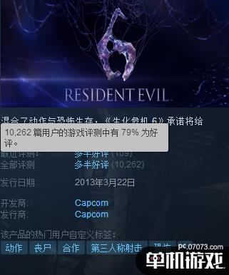 至此,Steam平臺上的《生化危機》主系列都有了中文,而《生化危機6》在發(fā)售5年后的今天,Steam好評率仍然保持在79%。