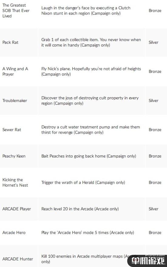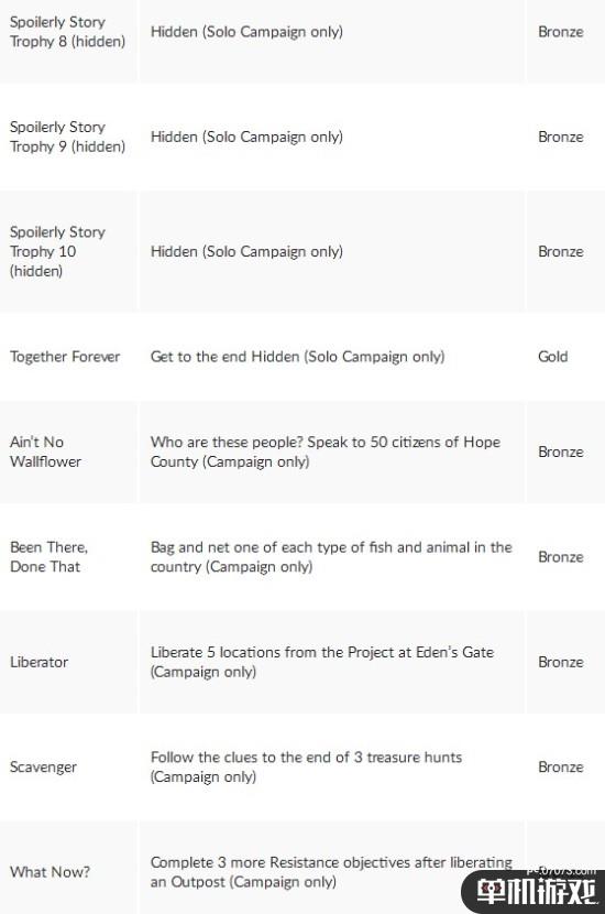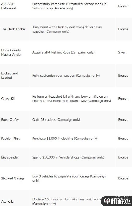 隨著《孤島驚魂5》正式發(fā)布的日期越來越近,國外Powerpxy網(wǎng)站已經(jīng)整理出了《孤島驚魂5》中的所有獎杯列表。