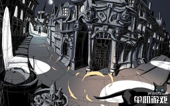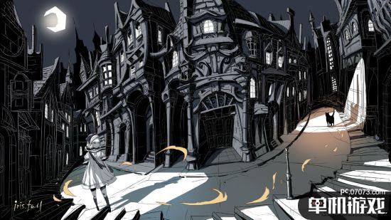 這張主設(shè)定圖已經(jīng)完美詮釋了游戲中的幾個重要的要素:光與影、小女孩與黑貓、冒險與解謎。英文游戲名中的Iris,也是主角小女孩的名字。她在黑貓的帶領(lǐng)下,意外進(jìn)入了一間破敗古老的劇院,在這里要解開一個個與光影相關(guān)的謎題,最終找到劇院的出口,揭露隱藏的真相。