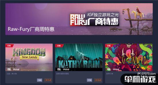 在這家大型發(fā)行商2K打折的同時(shí),為了慶祝剛剛結(jié)束的獨(dú)立游戲節(jié)IGF,獨(dú)立游戲發(fā)行商Raw Fury也在杉果開(kāi)啟了一波折扣。打折游戲包括近3年IGF提名及獲獎(jiǎng)作品:獲得最佳音頻設(shè)計(jì)獎(jiǎng)的《烏諾格 烏限版》,獲得最佳音頻設(shè)計(jì)提名的《折磨者 X 懲罰者》,2025年最佳音頻設(shè)計(jì)提名的《王國(guó):新大陸》,2025年最佳音頻設(shè)計(jì)獎(jiǎng)得主《奇界行者》,以及2025年最佳游戲設(shè)計(jì)和最佳音頻設(shè)計(jì)提名的《王國(guó):經(jīng)典版》。