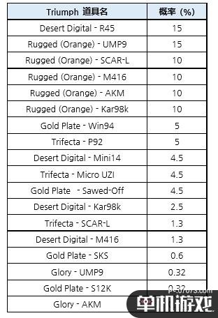 - 新收費箱 “Triumph”內(nèi)每個道具的獲取概率