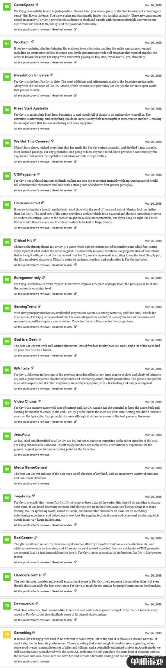 《孤島驚魂5》的媒體評(píng)分已經(jīng)解禁,目前已經(jīng)有首批媒體給出了游戲評(píng)分。