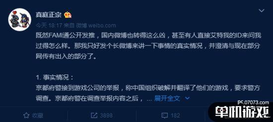既然FAMI通公開發(fā)推,國內(nèi)微博也轉(zhuǎn)得這么兇,甚至有人直接艾特我的ID來問我過得怎么樣。那我只好發(fā)個(gè)長微博來講一下事情的真實(shí)情況,并澄清與現(xiàn)在部分網(wǎng)傳有出入的部分了。