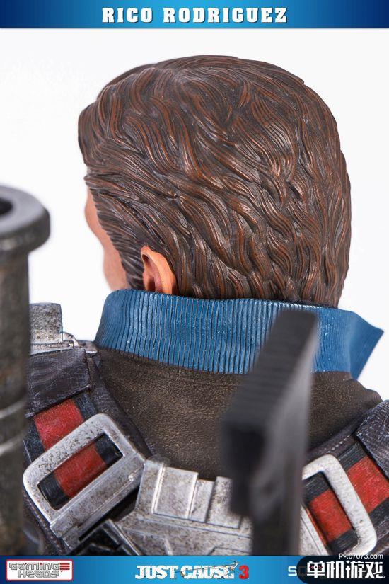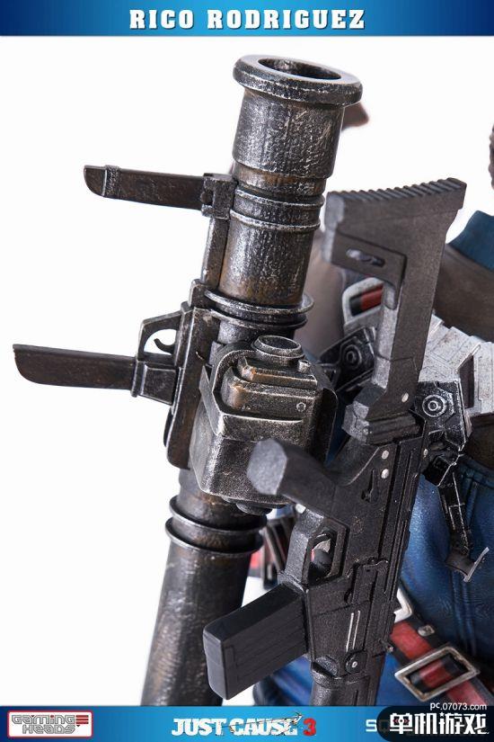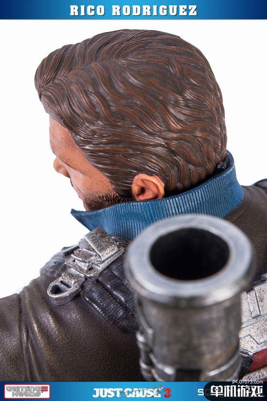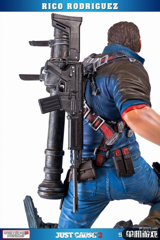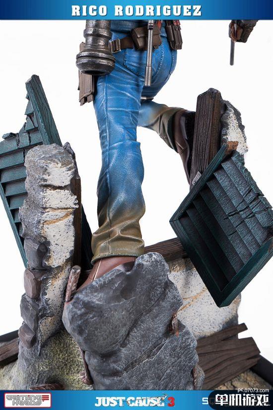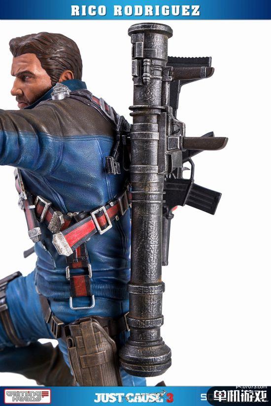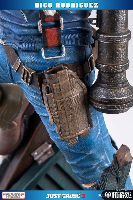 據(jù)悉,這款手辦高約53厘米,主角Rico Rodriguez的外觀完美還原游戲,面部十分精致。他右手拿著一把左輪手槍,背上背著一把步槍和超高出鏡率的火箭筒,而左手則是經(jīng)典的鉤爪+鞭子道具。鏡頭移到他身下踩著的場景,看來是又破壞了一處房屋了。