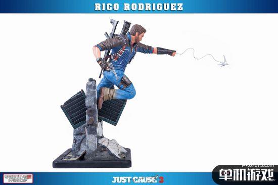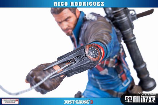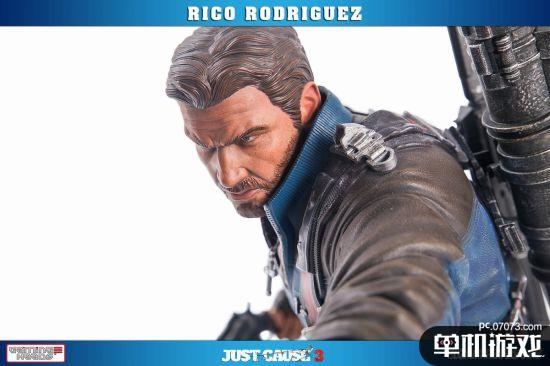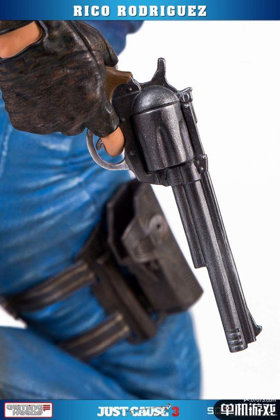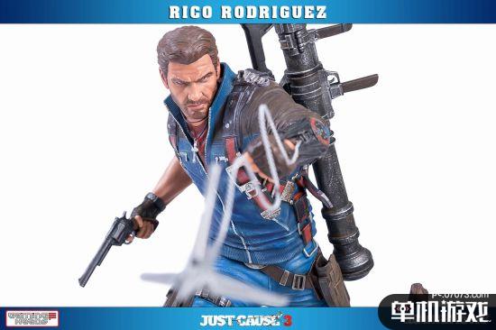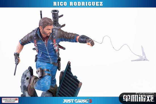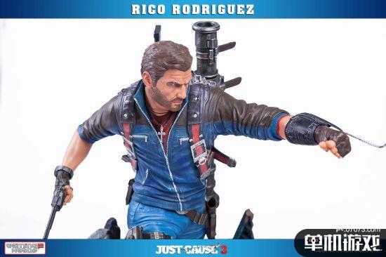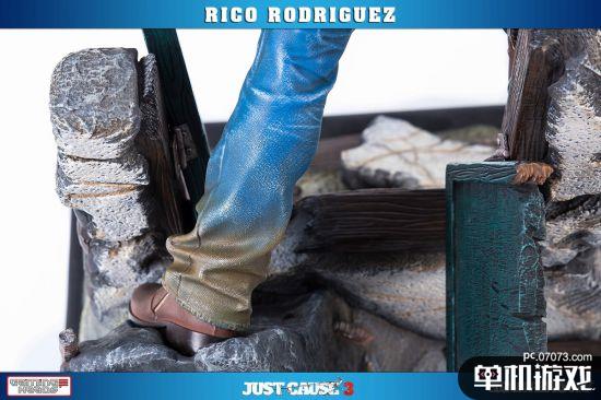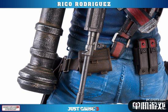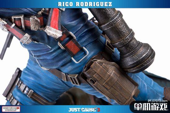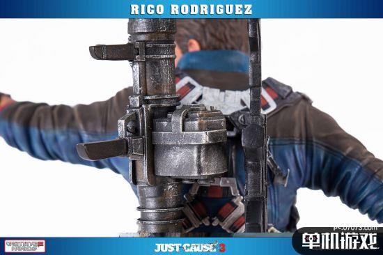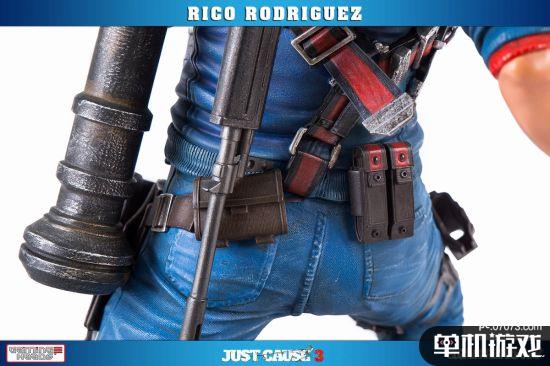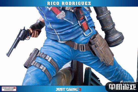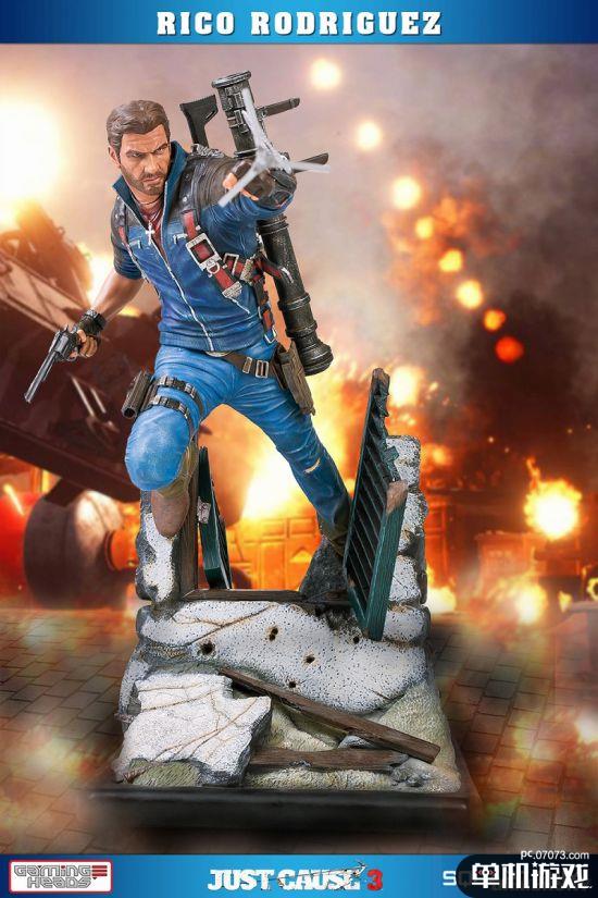據(jù)悉,這款手辦高約53厘米,主角Rico Rodriguez的外觀完美還原游戲,面部十分精致。他右手拿著一把左輪手槍,背上背著一把步槍和超高出鏡率的火箭筒,而左手則是經(jīng)典的鉤爪+鞭子道具。鏡頭移到他身下踩著的場景,看來是又破壞了一處房屋了。
