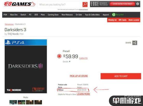 據(jù)外媒Dsogaming報(bào)道,國(guó)外零售商EB Games近日疑似意外泄露了《暗黑血統(tǒng)3》PS4版的發(fā)售日期。在該網(wǎng)站的《暗黑血統(tǒng)3》PS4版購(gòu)買頁(yè)面上,顯示游戲的發(fā)售時(shí)間為2025年8月8日。