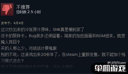 雖然這次《拳皇97:全球?qū)Q》在Steam上并不支持中文,但大部分玩家給出差評(píng)的原因并不在于此,而主要集中在過于“原汁原味”的不走心冷飯問題上。