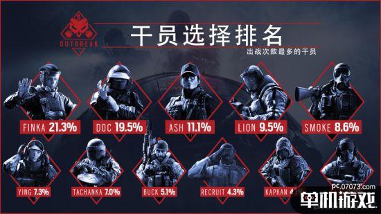 出場(chǎng)次數(shù)最多的干員為Finka,出場(chǎng)率21.3%,Doc以19.5%緊隨其后,第三位的是Ash。