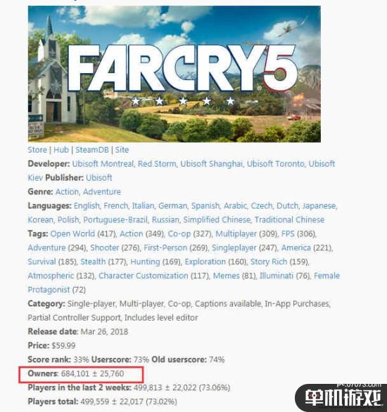 在SteamSpy的統(tǒng)計(jì)數(shù)據(jù)中,《孤島驚魂5》目前在Steam的銷量接近70萬(wàn),國(guó)區(qū)玩家占比12.5%。