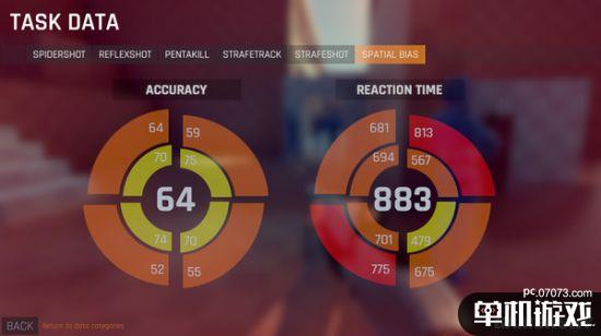 在《目標(biāo)實驗室》中,玩家可以在不同場景下使用不同武器與ai進行訓(xùn)練,游戲會對玩家的表現(xiàn)進行實時跟蹤和分析,然后對玩家的表現(xiàn)進行點評,并列出策略指導(dǎo)。項目包括速度、準(zhǔn)確度、精準(zhǔn)度、反應(yīng)速度、視覺敏銳度、決策速度、適應(yīng)性和視覺注意力,幾乎囊括了一切FPS需要的基礎(chǔ)能力。