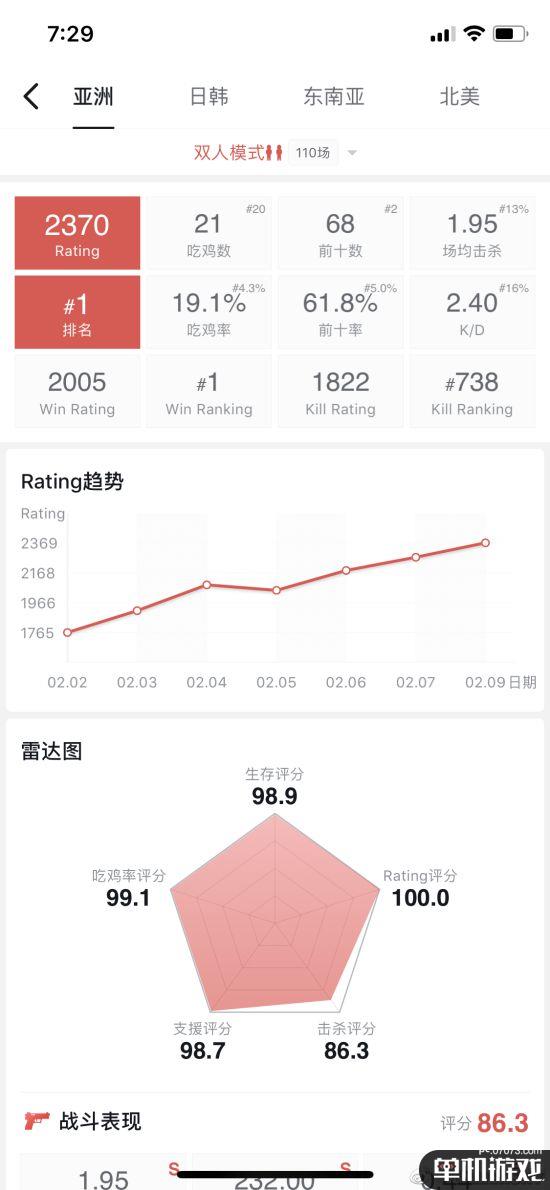 @Misaya若風(fēng)lol今天在微博上表示,自己在連續(xù)六個通宵之后終于登上了亞服第一的位置,數(shù)據(jù)顯示他的吃雞率達到了19.1%,場均擊殺1.95,KD達到了2.40。