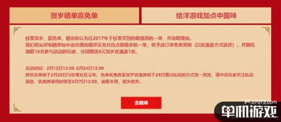 本次杉果春節(jié)優(yōu)惠活動(dòng)從2月12日12點(diǎn)開始,截止到2月26日12點(diǎn),感興趣的玩家千萬不要錯(cuò)過。更多活動(dòng)詳情也可以到杉果官網(wǎng)查看,或關(guān)注我們的后續(xù)報(bào)道。