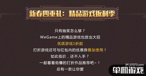 本次WeGame活動于2月12日-2月22日期間進行,使得玩家們在放假的每一天都能與紅包相伴,馳騁于游戲的海洋之中。本次活動共分為四大塊內容:每天登錄即可領取紅包;分享紅包給好友或購買游戲可多獲得一次紅包機會;完成春節(jié)任務獲得刮刮卡;以及多款精品游戲低折扣發(fā)售。這次WeGame的活動可謂是福利滿滿,既在春節(jié)期間讓玩家們感受紅包拿不停的快感,又能以更優(yōu)惠的價格獲取自己喜愛的游戲。