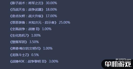 杉果春節(jié)福袋將在今天下午4點(diǎn)限量開賣,售價(jià)38.8元。從福袋中,玩家有機(jī)會(huì)開出《文明6》、《龍珠:斗士Z》、《全面戰(zhàn)爭(zhēng):戰(zhàn)錘2》、《生化危機(jī)7》、《戰(zhàn)錘40K:戰(zhàn)爭(zhēng)黎明3》等新老大作,而折后價(jià)39元的保底游戲《影子戰(zhàn)術(shù):將軍之刃》、《百戰(zhàn)天蟲:戰(zhàn)爭(zhēng)武器》、《奇點(diǎn)灰燼:戰(zhàn)火升級(jí)》、《罪惡裝備:?jiǎn)⑹句洝焚|(zhì)量也相當(dāng)不錯(cuò),開到完全不虧。福袋各游戲掉落概率如下: