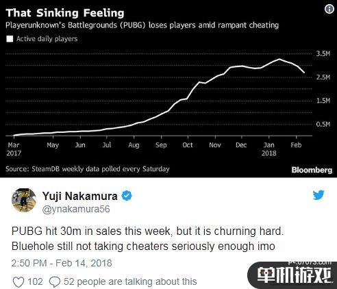 截至本周,《絕地求生》的總銷量達(dá)到了3000萬之巨,但是游戲的日均活躍玩家數(shù)卻在逐漸下降了。彭博社科技記者Yuji Nakamura表示,《絕地求生》PC版日活躍玩家數(shù)下降跟作弊猖狂可能有很大關(guān)系。