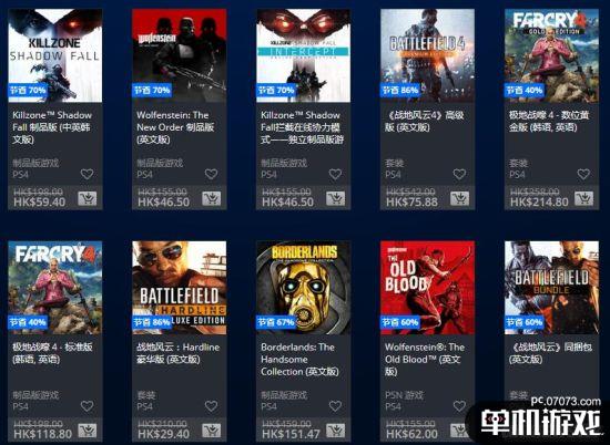 《德軍總部》系類都在折扣,新秩序3折優(yōu)惠只需46.5港幣堪比白送,就血脈62港幣,新巨人279港幣,《殺戮地帶:暗影墜落》59.4港幣可以重溫經(jīng)典,還有戰(zhàn)地周年同捆包3折240港幣,包含BF1,BF4、硬仗,《遠哭4》六折118港幣。