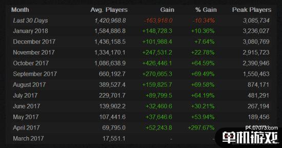 根據(jù)Steam Charts統(tǒng)計的數(shù)據(jù)顯示,最近30天以來,《絕地求生》的玩家人數(shù)繼續(xù)下滑。截至目前,平均玩家數(shù)在過去30天下滑的比例為10.34%,減少了約16.4萬個玩家。