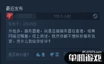 另外,根據(jù)Steam平臺最近30天的玩家游戲評測反映,游戲中依然存在“外掛多”、“服務(wù)器差”等問題,這或許也是玩家人數(shù)下滑的重要原因之一。