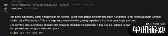 玩家upper_crust在Reddit上發(fā)表了帖子,感謝藍(lán)洞軟鎖Ping的行為,他表示自從做出了改變后,再遇到中國(guó)外掛玩家的幾率小了很多,游戲體驗(yàn)也好了很多,希望藍(lán)洞能夠一直保持,因?yàn)橹肮歼@個(gè)調(diào)整時(shí)聽(tīng)起來(lái)像是試運(yùn)行,所以他想要反饋給藍(lán)洞,告訴他們這個(gè)改動(dòng)很好,不用變了。