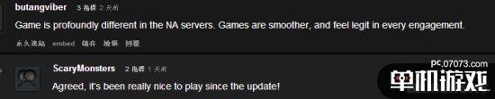 玩家butangviber留言道“在NA服務(wù)器游戲體驗(yàn)完全不同的,游戲更順暢”,這條留言也得到了另一外玩家的肯定:“同意,自從更新后一直玩得很開(kāi)心!”