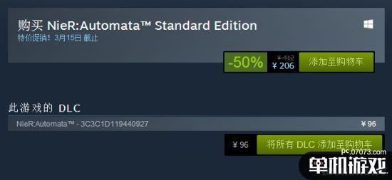 國區(qū)原價412元的《尼爾:機械紀元》在5折優(yōu)惠期間售價206元,不算之前失誤的199元的話,目前《尼爾:機械紀元》正是史低價促銷中,DLC無折扣。