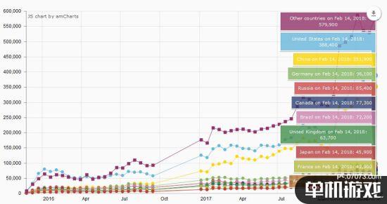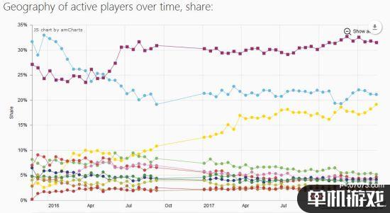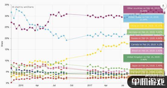 從整體趨勢(shì)來看,其他國家,包括美國玩家在內(nèi),德、俄、加、英等國都呈現(xiàn)一個(gè)下降的趨勢(shì),而最新的2月數(shù)據(jù)顯示,國區(qū)活躍玩家已經(jīng)飆升至19%,僅此于美國的21%。