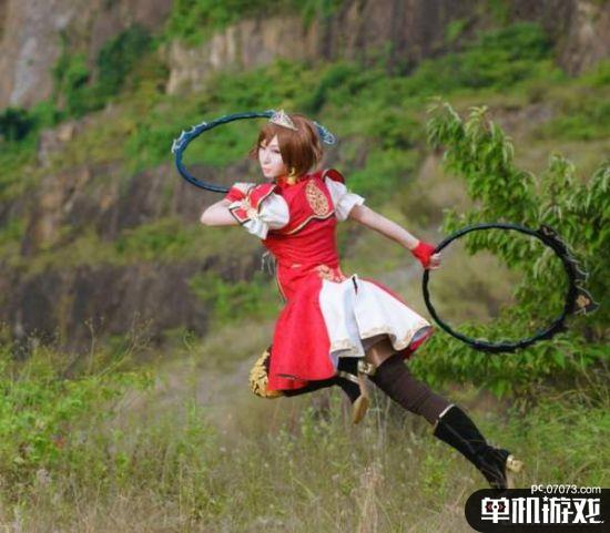 為了表現(xiàn)孫尚香的動(dòng)感,@motoayus2還曬出了一張躍起的照片,不過(guò)COSER本人還是非常追求完美的自己挑出了照片中的不足之處:動(dòng)感很好,但是臉看起來(lái)像狐貍…ww