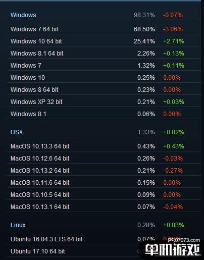 今年2月份,使用Windows 7(64bit)的Steam玩家占到了68.5%,比上個月略有下滑,但仍比增長中的Windows 10(64bit)用戶高出許多,排名第二的Windows 10(64bit)占比僅為25.41%,二者加起來就占據(jù)了Steam用戶約94%的比例。