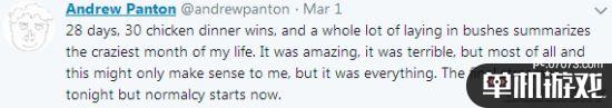 還記得那名要堅(jiān)持一個(gè)月只吃雞,并且在游戲里沒“吃雞”就啥也不吃的《絕地求生》主播Andrew Panton么?從2月1日開啟這項(xiàng)計(jì)劃的他已經(jīng)完成了挑戰(zhàn),成功“存活”。