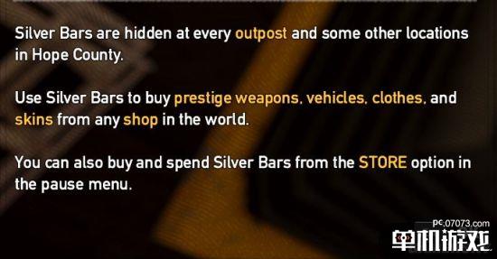 PC Gamer的編輯在試玩時(shí)找到了一個(gè)裝有幾條“銀條(silver bar)”的箱子,在他清剿了第一處邪教徒前哨站之后,他也收到了相關(guān)提示: