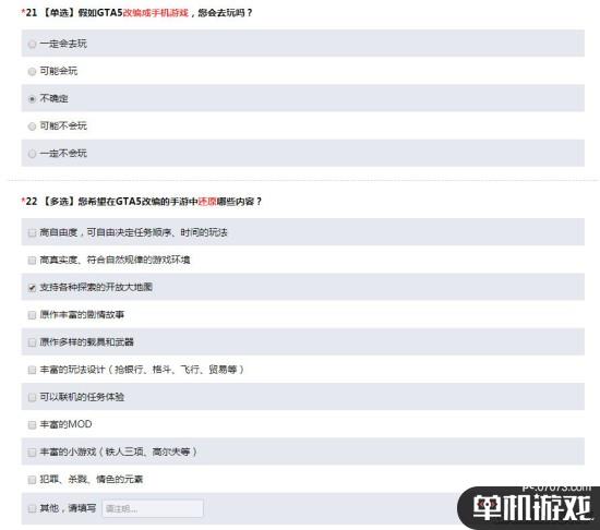 在第21個(gè)問題中問道:“假如GTA5改編成手機(jī)游戲,您會去玩嗎?”