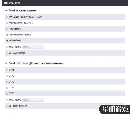 騰訊發(fā)布了一項(xiàng)新的調(diào)查問卷,問卷中提到了《GTA5》。