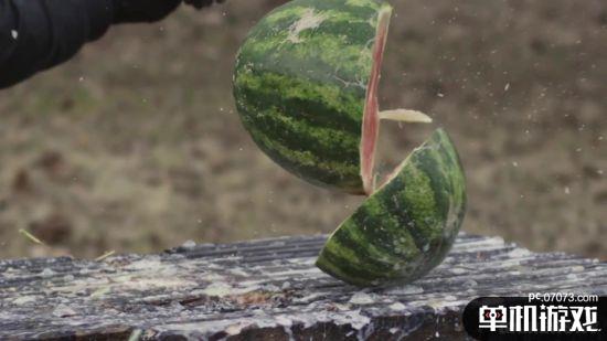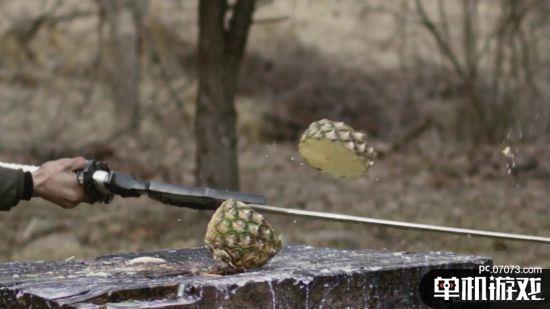 當(dāng)然這把武器打造出來也不是擺設(shè),雖然拿來削菠蘿切西瓜有點大材小用,但也可以看出劍還是相當(dāng)鋒利的。