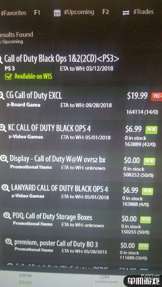 根據(jù)COD系列情報(bào)站charlieintel報(bào)道,有業(yè)內(nèi)人士爆料,游戲零售商GameStop的內(nèi)部數(shù)據(jù)庫(kù)里更新了一款COD新作的信息,從曝光的照片可以看到“CALL OF DUTY BLACK OPS 4”,即黑色行動(dòng)4的名字。