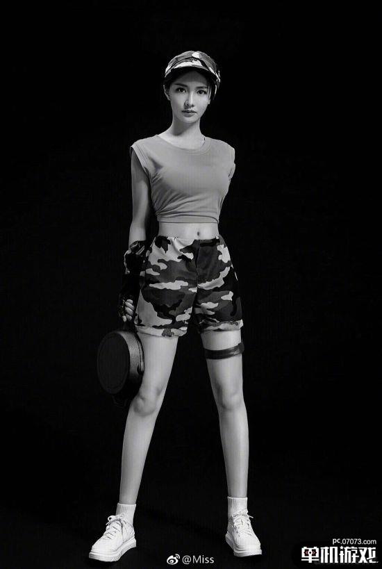 雖然是黑白色的COS照片,但相信玩家都對這套《絕地求生》的服裝不陌生,軍妹套的迷彩短褲+T恤,鞋子還是校服套的小白鞋,MISS穿起來帥氣又可愛,大長腿+小細(xì)腰,還有少不了的平底鍋。